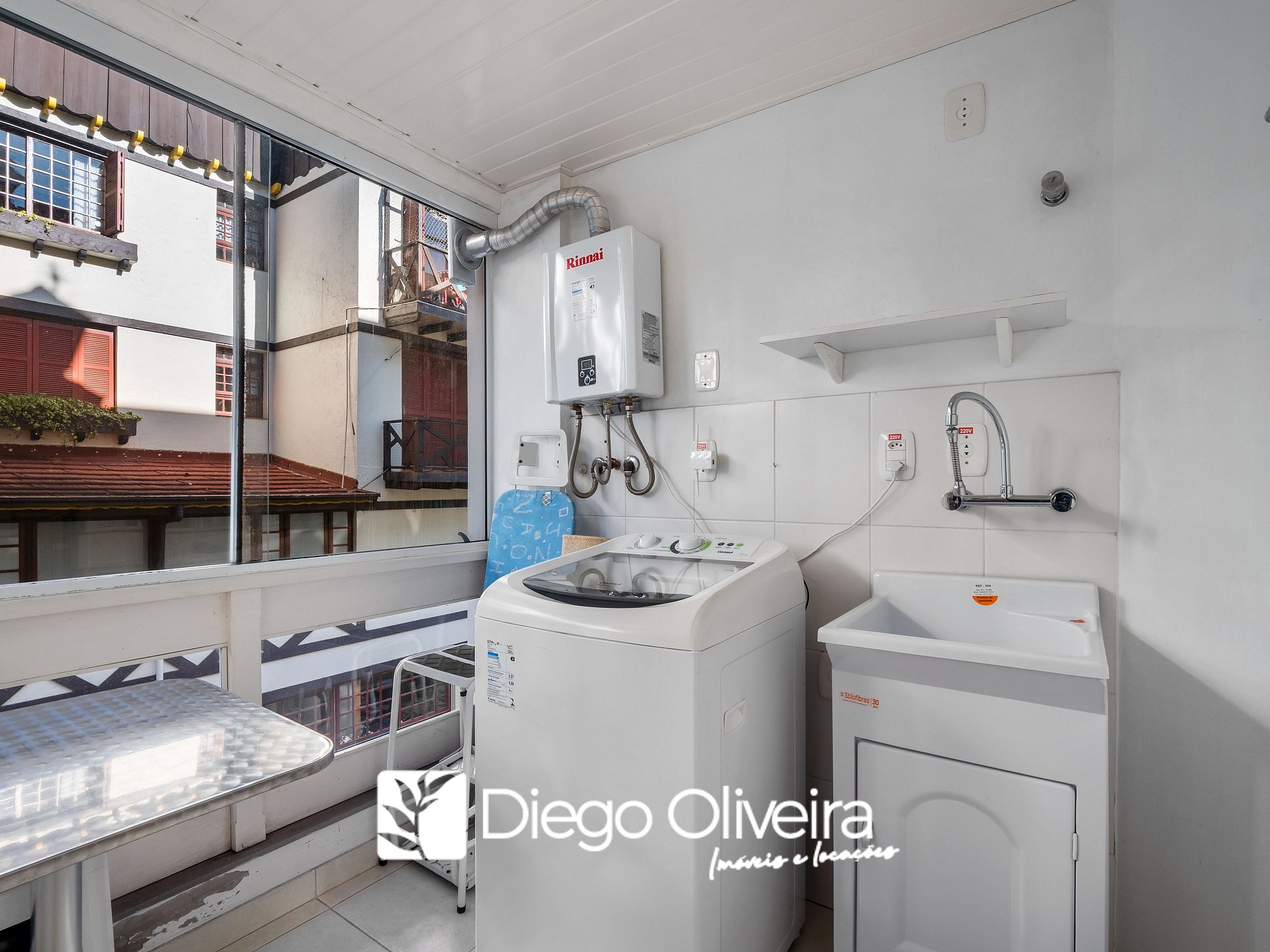 * Área de serviço com máquina de lavar.