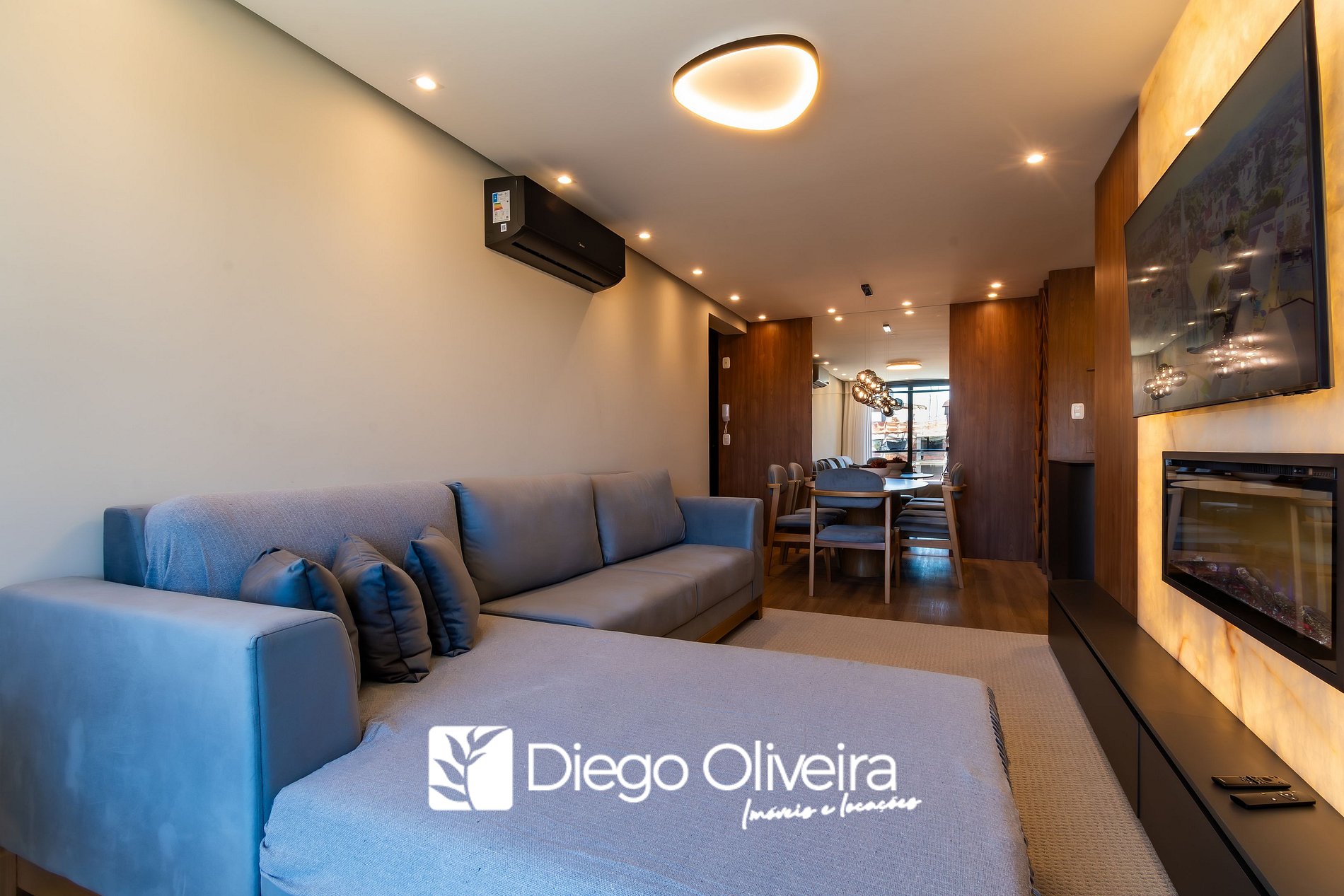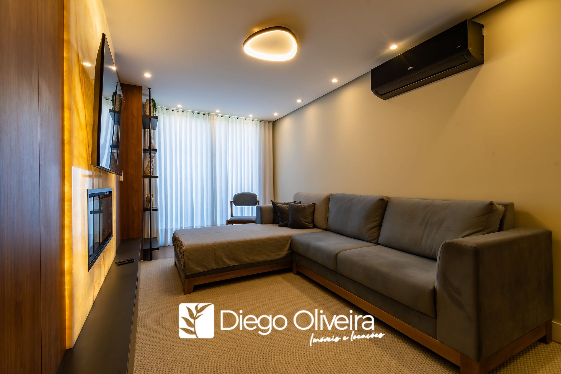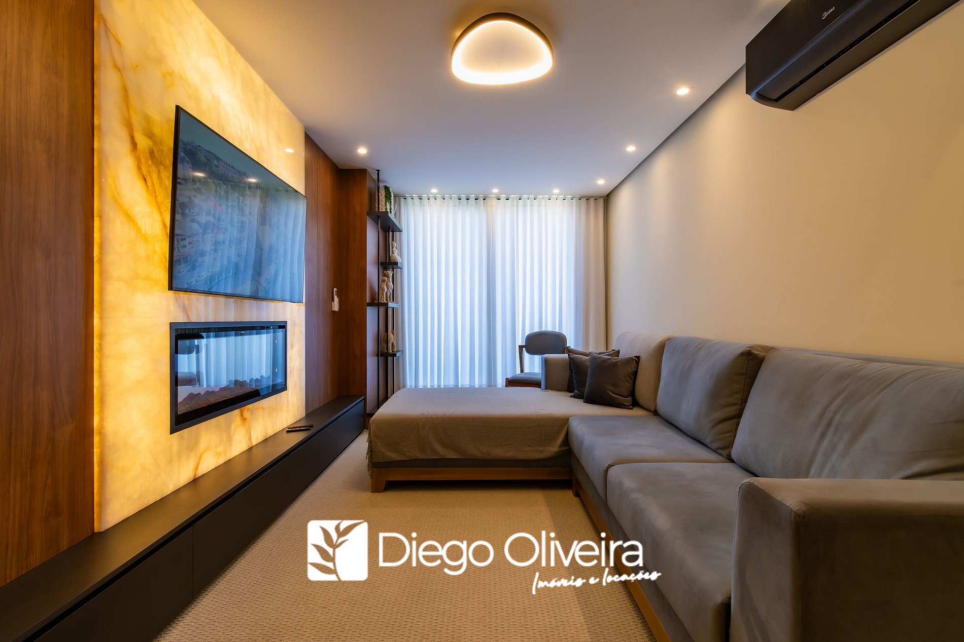 * Sala de estar com smart TV e ar condicionado quente e frio.