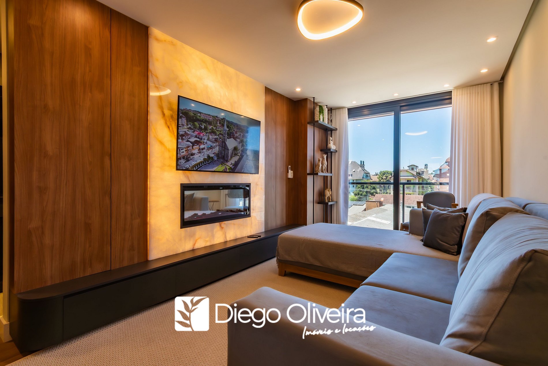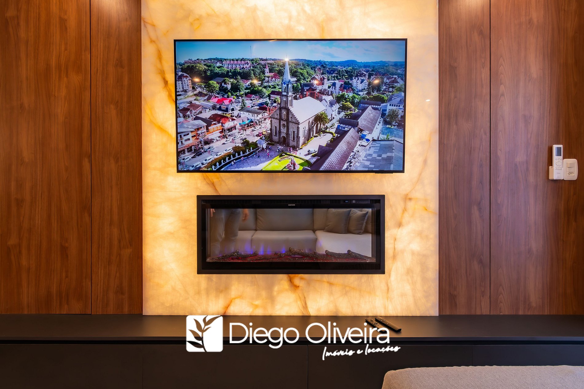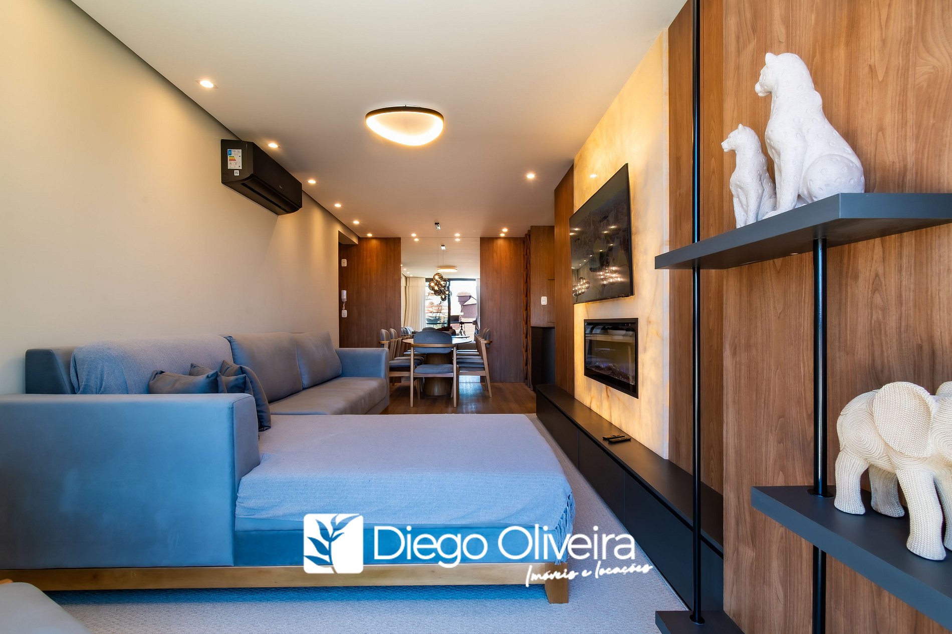 * Sala de estar com smart TV e ar condicionado quente e frio.